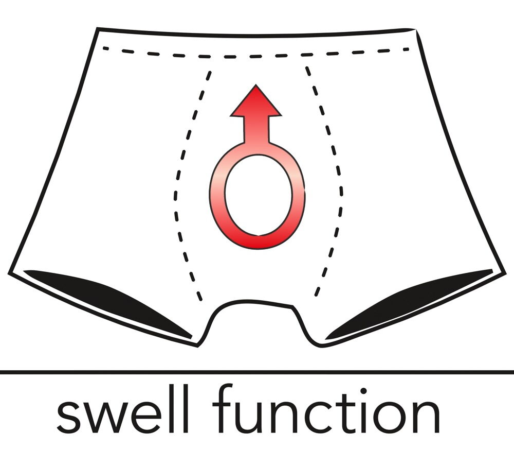 Stringkalsong från Svenjoyment med swellfunktion. Lätt vadderad i röd lackglans med svarta kontraster. Bred, bekväm resår.