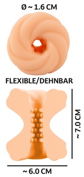 Made of super soft TPE, the 4in1 Pleasure Toy is very stretchy and elastic. The sleeve is easy to slip on and off and fits perfectly in the hand during a handjob massage. The skin-like, soft material can be pressed and stretched. So it adapts optimally to the body and movements.