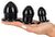 Tre glinsende, svarte analplugger/-tøyere i sett. Alle med stopper/fot.