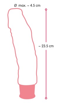 ¡Disfrutarás en cualquier posición! Vibrador de diseño natural muy flexible. Las vibraciones se pueden regular sin niveles. Tamaño: 23 cm, Ø 4,9 cm.