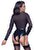 Extra djupt skuren strumphållarbody från Cottelli BONDAGE med genomskinlig, långärmad powernet-överdel och helt öppen trosdel i trendig mattlook - en perfekt sex-outfit när man vill vara lite spontan! Med fastsytt skärp med 2 ringar framtill och 2 ringar på sidorna där man kan sätta fast de medföljande handbojorna med karbinhakar. Handbojorna har justerbara kardborrband. De justerbara stumphållarna är justerbara.