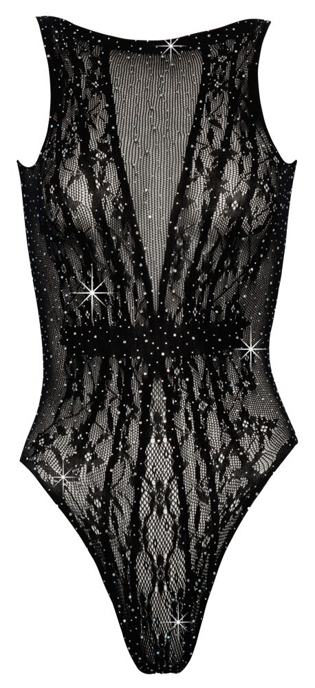 Body by Cottelli FANTASY made of fine, soft, semi-transparent stretch material - studded all over with rhinestones of various sizes. In the front with woven tendril optics. Beautiful cut-out in the upper back. All seamless, with no prominent hems, and elastic and supple for great comfort.