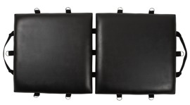 Dette lenkeunderlaget lar deg leve ut fetisjfantasiene dine nesten overalt. Det svarte underlaget er sammenleggbart og opptar ikke mye lagringsplass. Grepet gjør det enkelt å transportere underlaget, hvilket betyr at en avstraffelse kan foretas overalt. Det trenger bare plass når det skal brettes ut. Og når det gjelder tilbehør til bondage er det meste på plass: Underlaget er utstyrt med 4 arm- og 4 benlenker, samt halslenke. Plasseringen av lenkene kan varieres da de festet med karabinkrok. Moroa avrundes med en munnknebel, en pisk og ei øyemaske. Et sett til grensesprengende lyst og grenseløse sexfantasier.