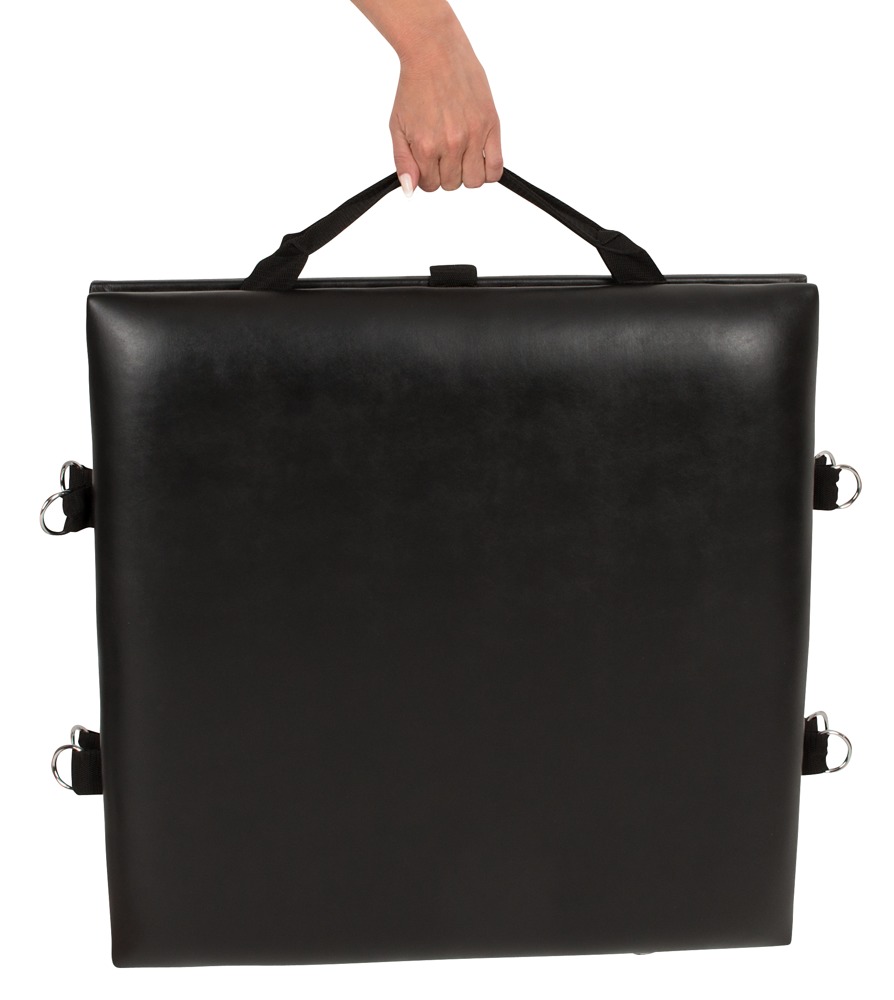 Med denna bondageplatta kan man leva ut sina erotiska fantasier nästan överallt. Den svarta bondageplattan kan vikas ihop och tar nästan ingen plats hemma. Tack vare bärhandtaget är det lätt att transportera bondageplattan. Inga problem med bestraffningar på valfri plats. Bondageplattan levereras med 4 arm- och benbojor samt 1 halsboja. Dessa kan sättas fast med karbinhakar på plattan. Inklusive en munkavle, en piska och en ögonmask för maximal njutning.