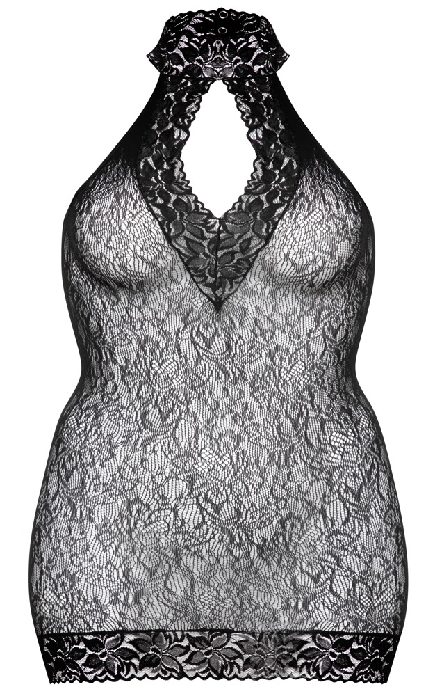 Ettersittnde og ekstra kort kjole Captivate fra Fifty Shades of Grey med cut-out i utringingen og over baken, som innbyr til kjærtegn, kyss eller avstraffelse. Komplett i elastisk blomsterblonde i sømløs kvalitet. Myk og behagelig kvalitet.