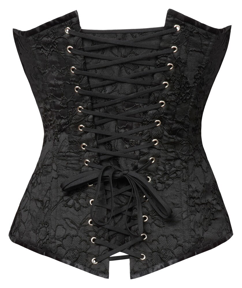Corsage intégral sans bretelles de Cottelli PARTY en noir mat et soyeux. Barres de forme intégrées (6 par côté) pour une silhouette définie et des courbes galbées. Fermeture rapide à l'avant (crochets et œillets) pour s'habiller et se déshabiller facilement. Dans le dos, le laçage continu est doublé de tissu pour éviter que la peau ne transparaisse.