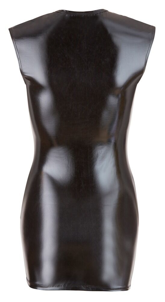Med denna svarta miniklänning av glänsande wetlook presenterar du dina feminina kurvor på bästa sätt! Tajt skuren, kort dress som är djupt urringad. Med 2-vägs-dragkedja som bara väntar på att öppnas...