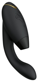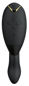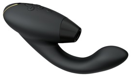 DUO2 fra Womanizer kombinerer den revolusjonære Womanizer Pleasure Air teknologien med kraftig G-punkt stimulering. Den klassiske Womanizer-hetta stimulerer klitoris mens den fleksible vibratorarmen tilpasser seg kvinners anatomi og pirrer den heite innvendige erogene sonen .