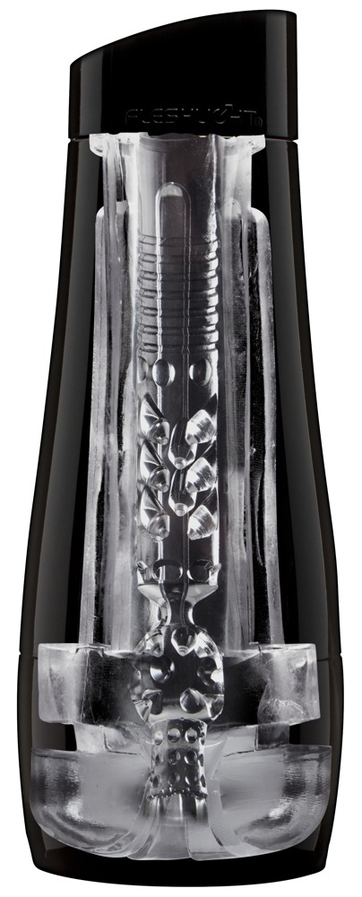 Gjennomsiktig masturbator i svart boks, med vagina lystkanal med nupper og riller, samt trang anusåpning. Gli inn i lystkanalene og opplev ekstase pur.