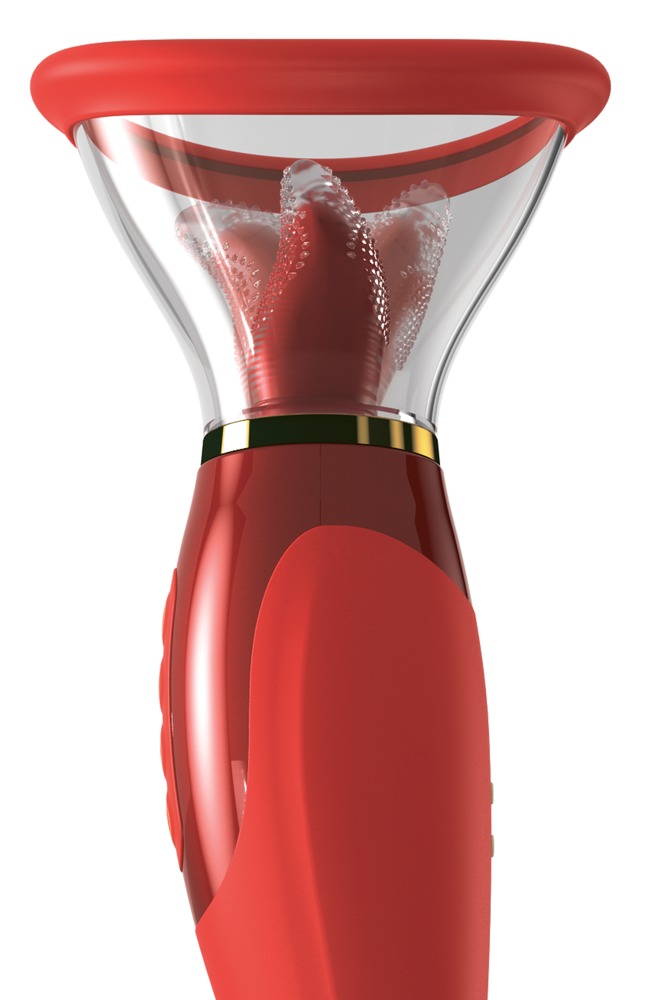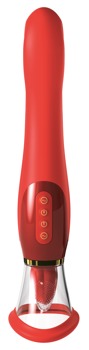3 i 1 vibrator som oppfyller alle erotiske ønsker. Det lett buede skaftet når lekende lett G-sonen og stimulerer med 10 vibrasjonsmodus. Den andre sida av dette 3 i 1 toyet har klitorisstimulator med 7 bevegelsesmodus, og ei sugeskål med 3 sugemønstre som skaper vakum per tastetrykk. Vakum-release funksjonen gir deg nytelse med sikkerhet. Sugeskåla er avtagbar og alle funksjoner justeres separat. Vanntett og kan gjerne brukes i badekar eller dusj. USB-ladekabel og reiseetui inklusive.