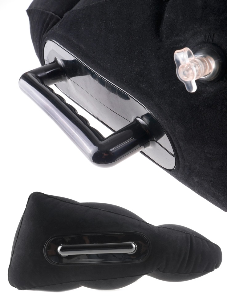 This Inflatable Position Master shouldn't be missing from anyone's bedroom. This comfy cushion can be inflated really quickly and supports couples in various positions for hot sex. The handles provide support and comfort. The slanting flocked design feels great against the skin. The cushion can be put away really quickly after all the fun.