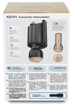 Keon WiFi forvandler FeelStroker til en fuldautomatisk håndjobmaskine. Den praktiske Stroker-masturbator sættes blot i Keon-adapteren. Den gribende stødmassage kan styres direkte på Keon WiFi ved hjælp af intuitive berøringskontroller. Det er også muligt at tilpasse stød, tilføjelser og interaktiv nydelse via smartphone/tablet/PC via Bluetooth/WLAN/app. Keon WiFi synkroniseres i realtid med videoer, VR, spil, live-indhold, webkameraer og partnerlegetøj. FeelMe AI- og FeelConnect-apps gør enhver fornemmelse og enhver rytme mærkbar i det helt rigtige øjeblik!