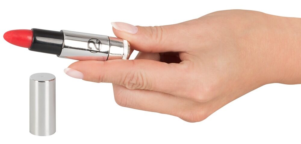 Liten vibrator i en oerhört äkta läppstifts-design. 8,7 cm, Ø 1,9 cm. Material: ABS, med mjuk PVC-spets. Inklusive batterer.