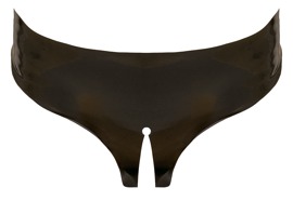 Dieser hautenge Latex-Slip lockt mit vollständig offenem Schritt und eignet sich somit bestens für sofortige Lusteinsätze!