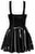 Eenvoudig en mooi getailleerd mini jurkje van LateX gemaakt van zwarte latex (dikte 0,35 mm). Huiddichte top met smalle bandjes bovenaan en een wijde zwierige rok onderaan.