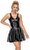 Простое и красивое приталенное мини-платье от LateX из черного латекса (толщина 0,35 мм). Облегающий верх с узкими бретелями вверху и широкой распашной юбкой внизу.