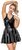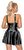 Belle et simple mini-robe cintrée de LateX en latex noir (épaisseur 0,35 mm). En haut, un style top à fleur de peau avec des bretelles étroites, en bas, une petite jupe qui se balance largement.