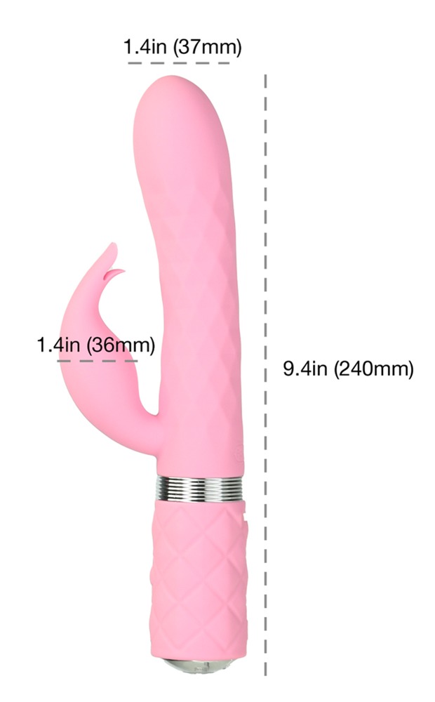 Den intensivt strukturerade, dubbelmotoriga rabbitvibratorn Lively från Pillow Talk borrar sig djupt in i vaginan medan den intensivt masserar G-punkten. Samtidigt blir klitorisen stimulerad av den flexibla stimulatorarmen med 3 tungor.