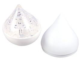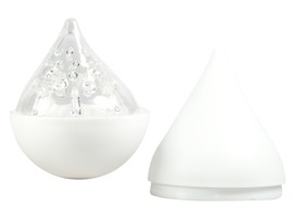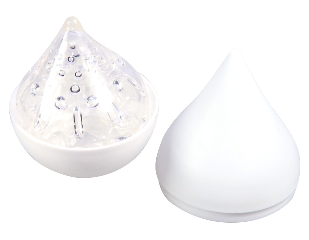 - In a discreet droplet-shaped box