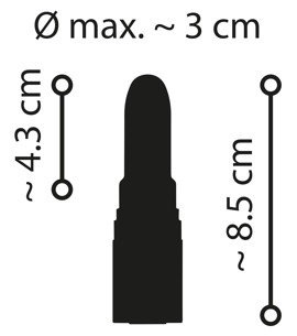 Longueur totale 8,5 cm, longueur d'insertion 4,3 cm, Ø 3 cm. Poids 42 g. Silicone, PU, ABS.