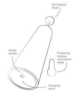les 6 modes de vibration par simple pression sur un bouton rendent la stimulation précise simple et variée. Tout comme les deux embouts qui sont facilement interchangeables. L'embout boule et l'embout langue (Flickering Tongue) en silicone soyeux flattent chaque point chaud !