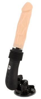 The powerful thrusting vibrator, RC Fucking Machine Flesh from You2Toys, is in a penis shape. It also has a removable suction cup that can be adjusted 90°. The suction cup will stick firmly and securely to any smooth surface for hands-free thrusting pleasure. The impressive & realistic vibrator thrusts powerfully with its vibrating glans over and over again for deep, realistic and intense stimulation via the remote control!