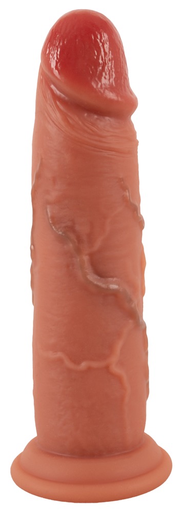 Biegsamer Dildo Real Skin von Realistixxx im absolut lebensechten Penislook mit beweglicher geäderter (Haut-)Oberfläche und prall ausgeformter Eichel. Mit Saugfuß, der auf jeder glatten Fläche fest und sicher haftet für freihändigen Spaß. Somit ist der Dildo auch kompatibel mit Strap-ons und Harnessen.