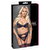 Soutien-gorge à armatures, porte-jarretelles et string Rio réunis dans un ensemble noir de Cottelli LINGERIE. Le tout est réalisé en dentelle stretch fine et douce et en satin élastique. Le soutien-gorge et le string sont ornés à l'avant d'une chaînette couleur or rose qui peut être retirée. Les bretelles du soutien-gorge et la fermeture à crochets dans le dos sont réglables. Tout comme la fermeture à crochet à l'arrière du porte-jarretelles à la taille et les jarretelles.