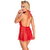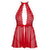 Picardías corto acampanado de kissable en rojo transparencia hecho de precioso encaje floral (parte superior) y fino powernet (falda). Suave como la seda y elástico para una gran comodidad de uso. En la parte delantera con un generoso escote desde el cuello halter hasta la banda de la cintura. El escote halterneck de cinta de raso se anuda en el cuello, la cinturilla de raso se anuda en la parte delantera. Sin espalda. Se incluye un pequeño tanga de encaje a juego.