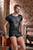 Rett skåret overdel i edel, svart mattlook med kort glidelås i messing foran. Ringer ved skuldrene og snøring på ermene. Deilig elastisk for optimal passform.