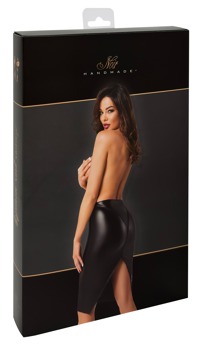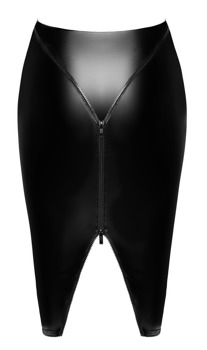 The tight-fitting skirt Orgia Exclusive from Noir is knee-length. It is made out of trendy, black powerwetlook and it has a fancy, 2-way zip at the back. The zip is decorative and sexy. It is soft and stretchy for an extremely comfortable fit.