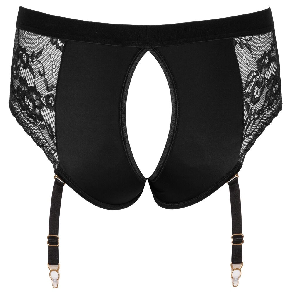 - Panties sans fesses avec anneau porte-jarretelles à l'avant