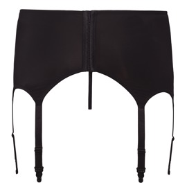 The wide suspender belt from Svenjoyment is made out of soft microfibre. There is a lace insert at the front that has decorative lacing over it. It is also stretchy for a comfortable fit. There is a hook fastener at the back that has two rows of hooks.