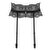 Bildschöner schwarzer Strapsgurt Nutris von Obsessive aus weicher elastischer Spitze mit kleinem Schmuckelement vorne. Im Rücken mit Hakenverschluss. Die Strumpfhalter sind verstellbar.