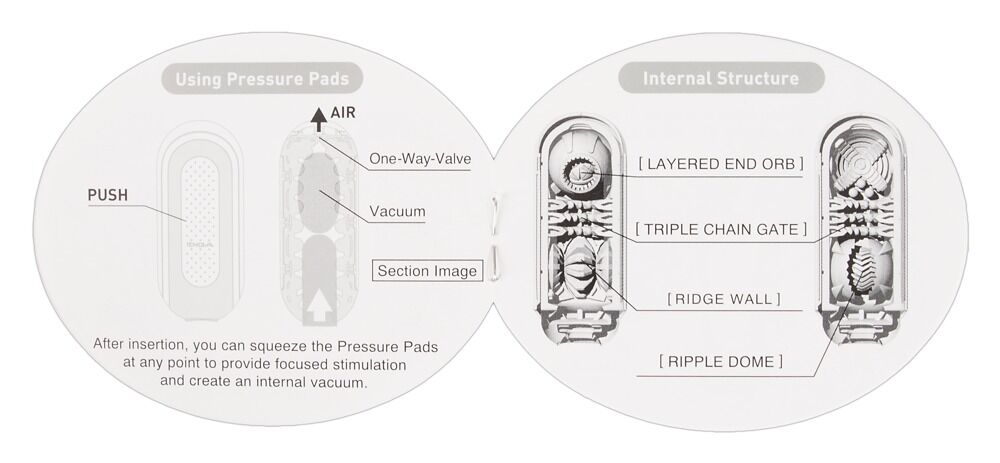 Med 4 spännande och varierande strukturer med noppor och räfflor. Masturbatorn kan öppnas och är på så vis väldigt lätt att göra rent. Perfekt för den tekniskt intresserade mannen. Med inbyggd torkställning för en hygienisk användning. Intensiteten på onaniupplevelsen kan öka om man trycker på sidorna.
