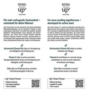 up Green Power ist eine speziell für den Mann entwickelte Nährstoffkombination, die seine Vitalität in jeder Lebensphase unterstützt. Die 100% natürliche vegane Rezeptur enthält eine gezielte Auswahl bewährter Pflanzenextrakte sowie Vitamine und Spurenelemente: u.a. • Nicotinamid (Vitamin B3) trägt zur Verringerung von Müdigkeit und Ermüdung bei • Vitamin C trägt zu einem normalen Energiestoffwechsel sowie zur Verringerung von Müdigkeit und Ermüdung bei • Zink trägt zur Erhaltung eines normalen Testosteronspiegels im Blut bei.