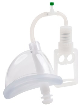 Coupelle d'aspiration intime de 12 cm de long, 7,5 cm de large, 8,5 cm de profondeur ; sonde de 14 cm de long, 2 cm de large. PC, PVC.
