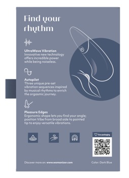 Эргономичный и удобный накладной вибратор VIBE от Womanizer восхищает своей новой уникальной технологией UltraWave. Глубокие, мощные вибрации интенсивно, но очень нежно воздействуют на клитор и другие чувствительные зоны удовольствия. Незабываемые кульминации - без перестимуляции! Бесшумный линейный моторчик обеспечивает очень незаметное и беспрепятственное удовольствие. Чистое удовольствие - снова и снова - и никто ничего не услышит!