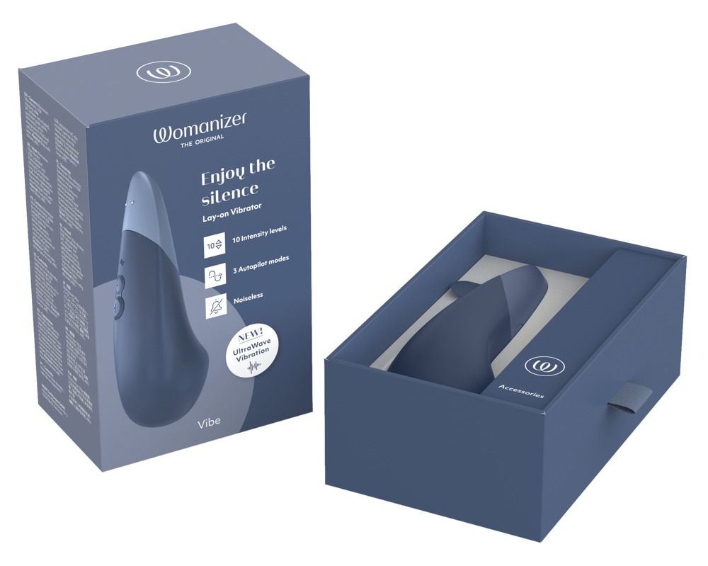 The ergonomic and easy-to-use lay-on vibrator, VIBE from Womanizer, will delight you with its new and unique UltraWave technology. The deep, powerful vibrations stimulate the clitoris and other sensitive pleasure zones intensely but very gently. For unforgettable climaxes – without overstimulation! The silent linear motor allows you to concentrate fully on your own pleasure. Discreetly and without distraction.