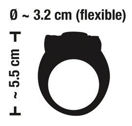 Svart penisring som fast omslutter lemmet, mens den uttagbare minivibratoren (On/Off knapp) stimulerer. Diameter 3,2 cm (svært tøyelig). Materiale: silikon, ABS (bullett). Inklusive rundcellebatterier.