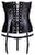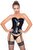 Stroppeløs helbryst-korsage fra Black Level i skinnende blank svart lakk, med juster- og avtagbare strømpestropper. Formspiler gir perfekt støtte og passform og den variable snøringa i ryggen er sexy blikkfang. Gjennomgående glidelås foran forenkler av- og påkledning. Enkel, matchende strengtruse i lakk medfølger.