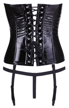 A strapless corset with full cups from Black Level made out of shiny black vinyl with adjustable and removable suspender straps. The integrated shaping bones guarantee a perfect fit and the lacing at the back is a real eye-catcher because it also allows seductive glimpses of the skin. It has a full-length zip at the front which means that the corset can be put on and taken off very easily. The included small, simple vinyl string completes the beautiful, shiny look.