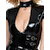 Mini sukienka od Black Level w całości z czarnego lakierowanego połysku. Dopasowany do sylwetki krój z rozkloszowaną spódnicą. Z krótkimi rękawami i surową stójką z pierścieniem (bondage) przymocowanym z przodu. Pod spodem duże wycięcie w dekolcie. Z 2 regulowanymi paskami z klamrami po bokach talii. Zamek błyskawiczny na całej długości z tyłu.