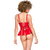 Lack-Set von Black Level mit länger geschnittenem Schößchen-Top und Riostring. Im knallroten Glanz mit silberfarbenen Accessoires. Tief dekolletiertes, tailliertes Top mit Metall-Reißverschluss vorne. Hinten offen mit variabler Schnürung. Die Träger an großen Ringen sind mit dekorativen Druckknöpfen passend verstellbar. Dazu passender Lack-Riostring seitlich mit Stretchbändern für komfortablen passformsicheren Sitz.