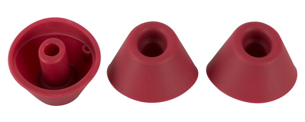 3 pièces. Taille S. Ø intérieur 16,5 mm, hauteur 27,5 mm, 2,20 cm³. Silicone.