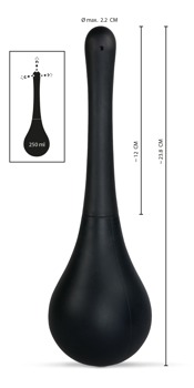 Svart 200 ml intimdusch med tre öppningar och avtagbar, smal sprutpåsats. Fyll bara pumpbollen med vatten eller dylikt, sätt på påsatsen och nu kan du njuta av sköna sprut. Total längd 26 cm, kan föras in ca. 12 cm. Material: silikon, ABS.