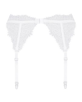 Magnifique porte-jarretelles blanc Bianelle de Obsessive en douce dentelle élastique à cils. Fermeture à crochets dans le dos. Les jarretelles sont réglables.