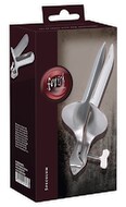 metalowy łańcuszek o długości 30 cm z kolekcji fetysz z 2 zaciskami na sutki. Nacisk zacisków (każdy o długości 5,5 cm i szerokości 1,5 cm) można indywidualnie regulować za pomocą śrub regulacyjnych. Gumowe osłony na zaciskach są zdejmowane.