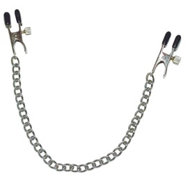 30 cm lange metalen ketting uit de fetish collectie met 2 tepelklemmen. De druk van de klemmen (elk 5,5 cm lang, 1,5 cm breed) kan individueel worden aangepast met stelschroeven. Rubberen beschermhoesjes op de klemmen zijn afneembaar.