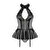 Sukienka z pończochami i pasujące do niej figi w czarnym komplecie 859-COR-1 marki Obsessive. Elegancki wet look połączony z delikatnie wzorzystym elastycznym tiulem. Miękki i rozciągliwy dla pełnego komfortu. Sukienka na szelkach z rozkloszowaną peplumą, zamkiem błyskawicznym z przodu i zmiennym sznurowaniem z tyłu. Dekolt bez pleców z zapięciem na rzep. Regulowane paski do pończoch są odpinane.